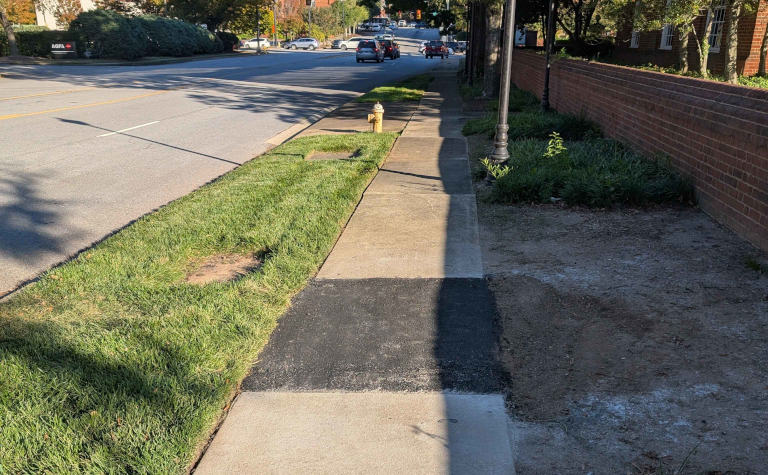 During a walk audit, one of our volunteers encountered a broken sidewalk on W McBee. After checking the road ownership map, he discovered that, at the time, maintenance of W McBee Ave was shared between SCDOT and the City of Greenville.